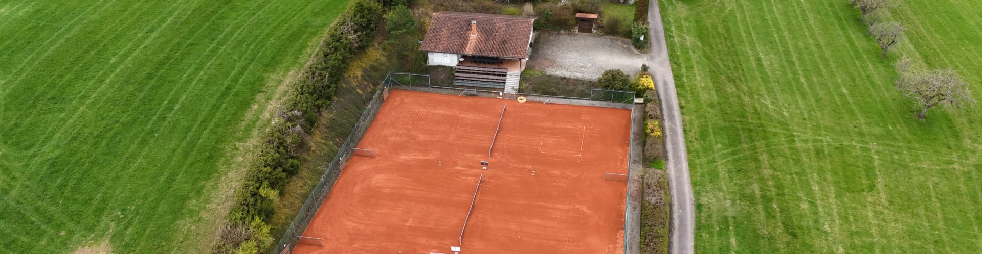 Bild der 3 Tennisplätze, sowie des Klubhauses